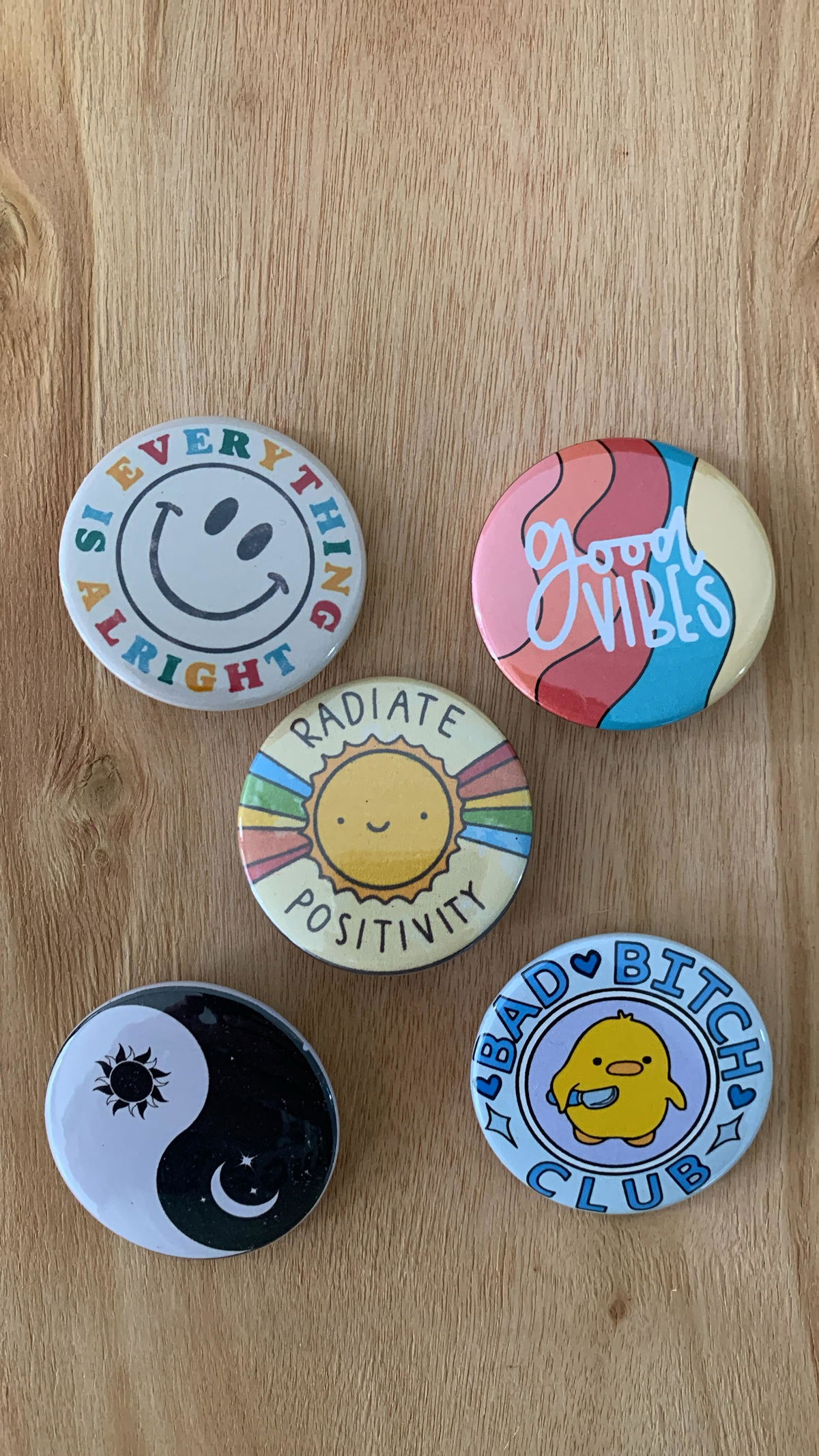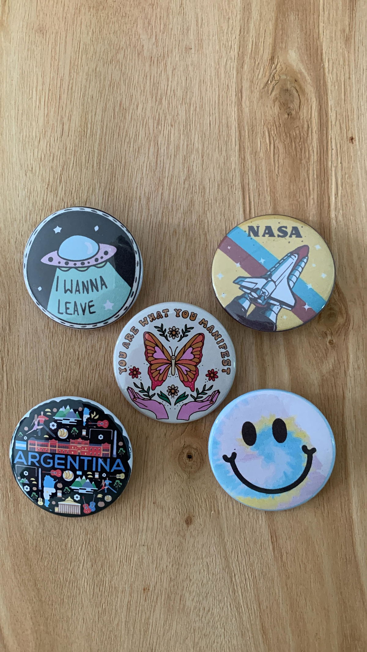 Pines Prendedores 38 mm Circulares Pack x5 Unidades - Aesthetic Surtidos