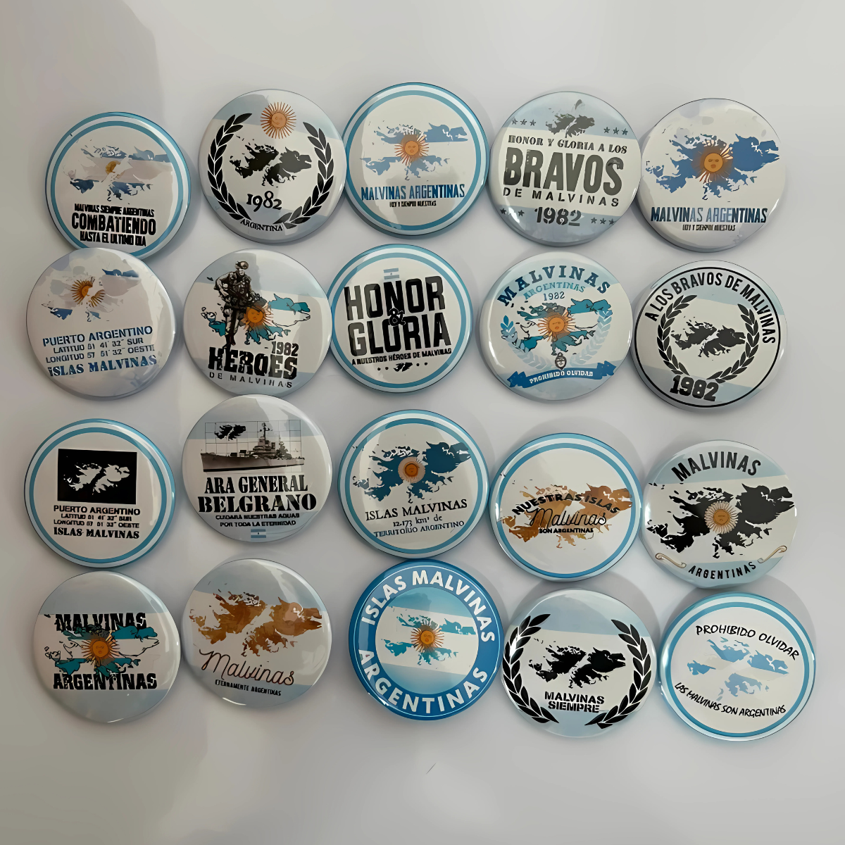 Pines Prendedores 38mm Circulares Pack x20 Unidades - Malvinas Argentinas