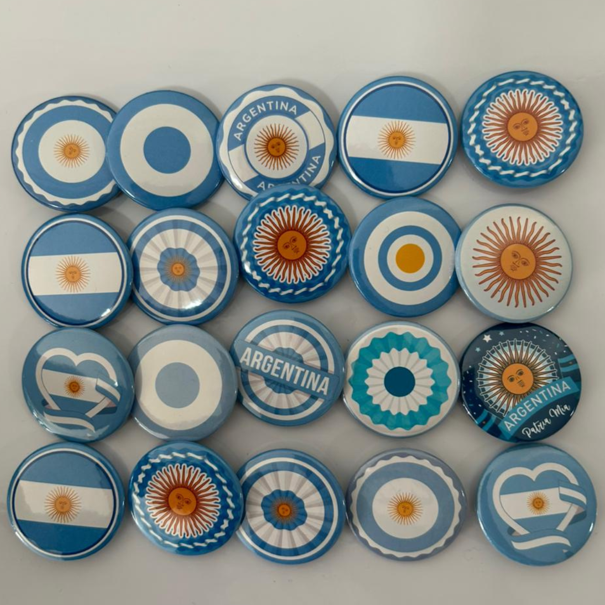 Pines Prendedores 38mm Escarapela Argentina Pack x20 Circulares Surtidos