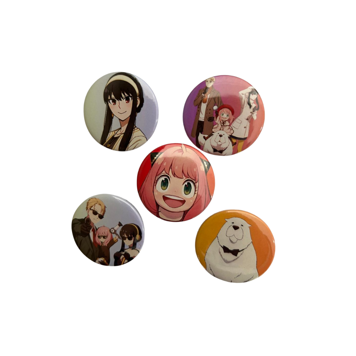 Pack de 5 pines surtidos.