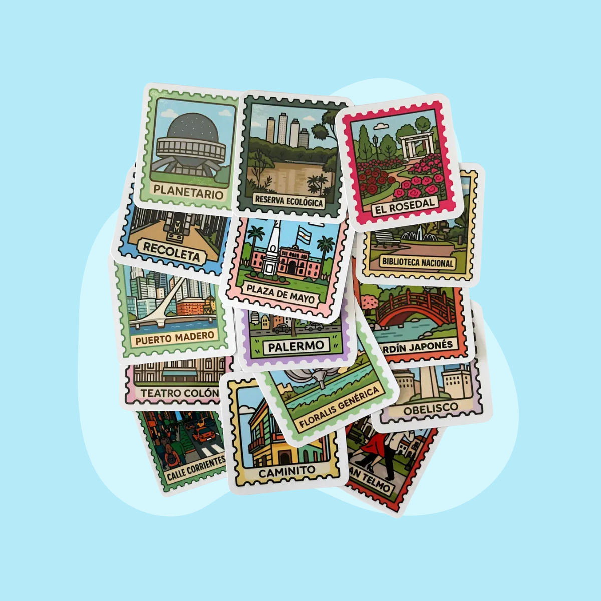 15 Stickers Vinilo Estampillas de Buenos Aires