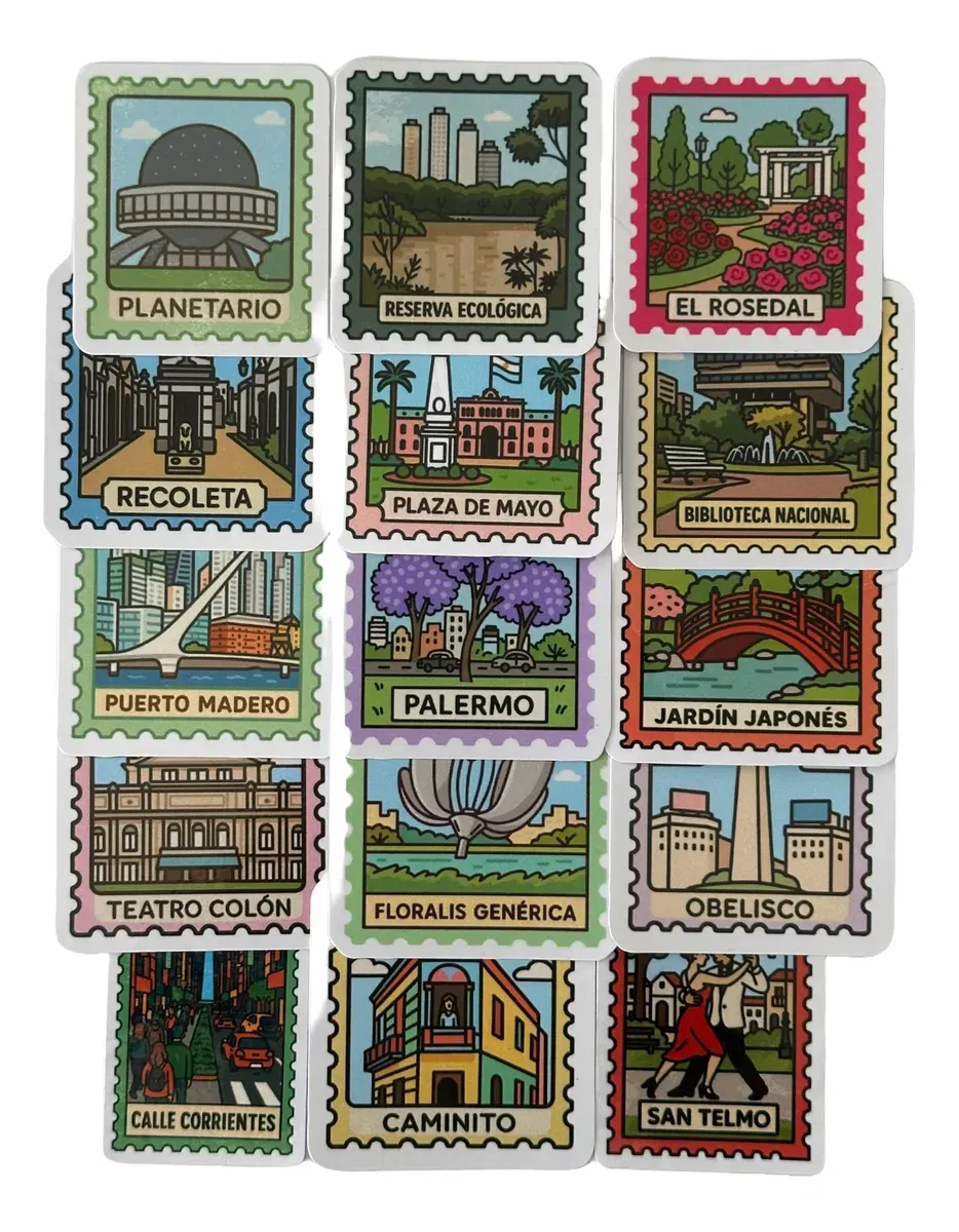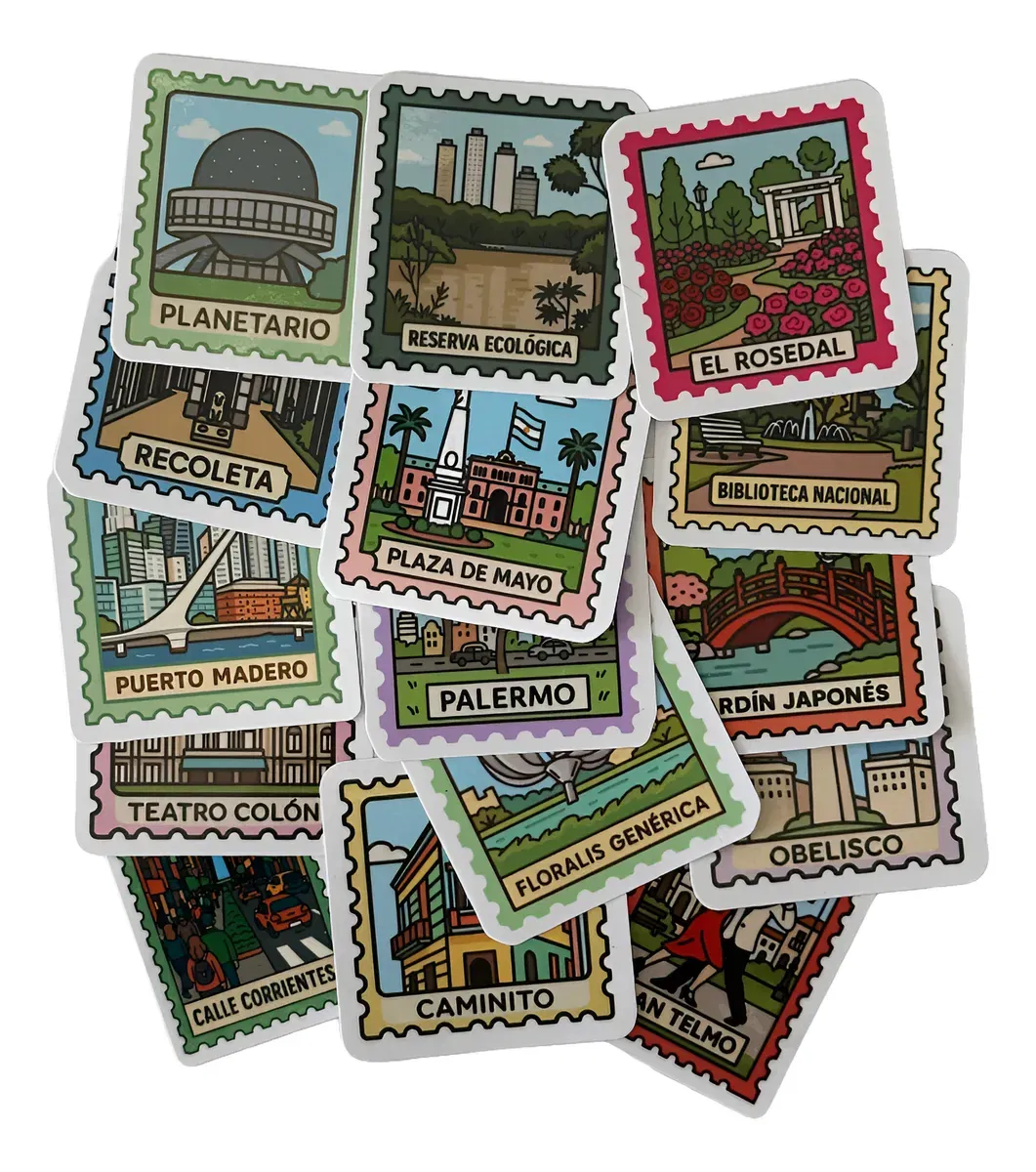 15 Stickers Vinilo Estampillas de Buenos Aires