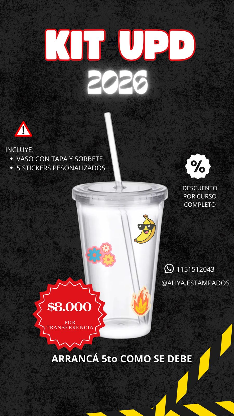 - Vaso de acrílico transparente de 500cc + 5 stickers personalizados (a prueba de agua y rayones)